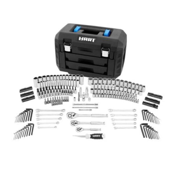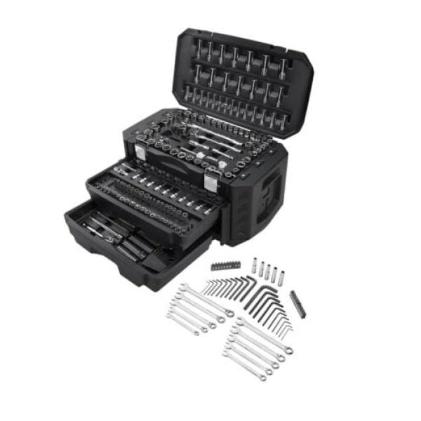This limited edition 270-Piece Mechanics Tool Set comes with 55 bonus pieces and delivers the performance you need to handle any job in the garage or at home. This set features an extensive range of SAE and Metric-sized sockets and drive tools. The 90-tooth ratchets allow up to 20%* more access in tight spaces, and the reverse switch lever lets you change the working direction with one hand. The set includes (13) tools and adaptors, 1/4″ drive 6-point sockets (standard and deep well), 3/8” drive 6-point sockets (standard and deep well), and 1/2″ 12-point sockets. For more specialty applications, star bits and a variety of hex-bit sockets are included. In addition, the chrome finish provides rust resistance for added durability and large-size markings for quick and easy identification. The set comes in a durable case with metal latches, barrel hinges, and additional storage space for maximum versatility. Get this tool set today before it is gone!